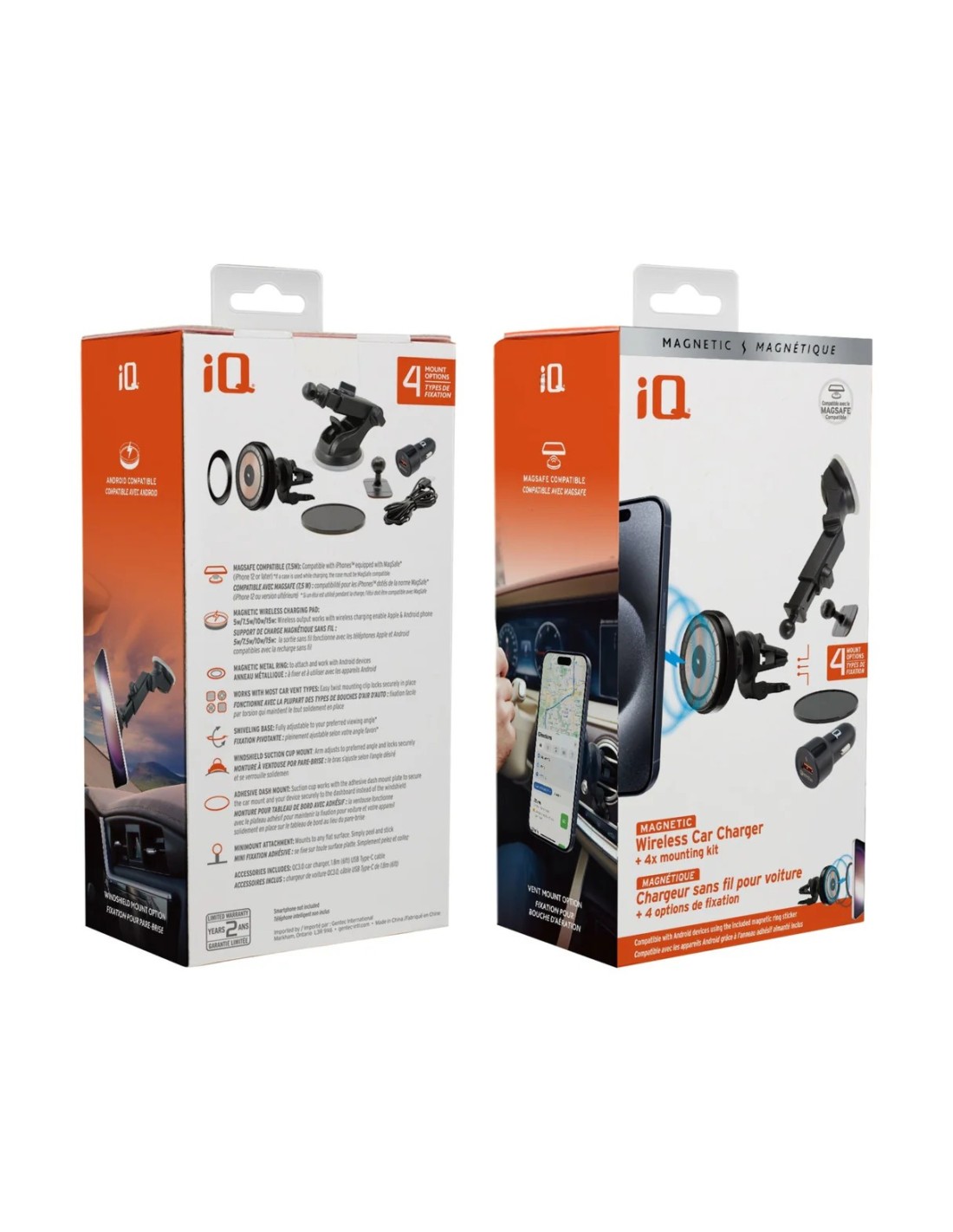 Le chargeur sans fil pour voiture iQ MagSafe est conçu pour offrir une recharge rapide et sécurisée pendant vos trajets. Grâce à son système magnétique puissant compatible MagSafe, votre smartphone reste parfaitement maintenu même sur route irrégulière.