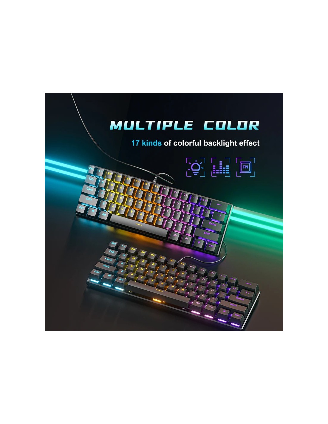 Optimisez votre espace de travail ou de jeu avec le Zifriend BD61 Noir. Ce clavier mécanique au format compact de 61 touches est conçu pour offrir performance et simplicité sans encombrer votre bureau. Avec son design sobre et son rétroéclairage dynamique, il s'intègre parfaitement dans n'importe quel setup professionnel ou gaming.