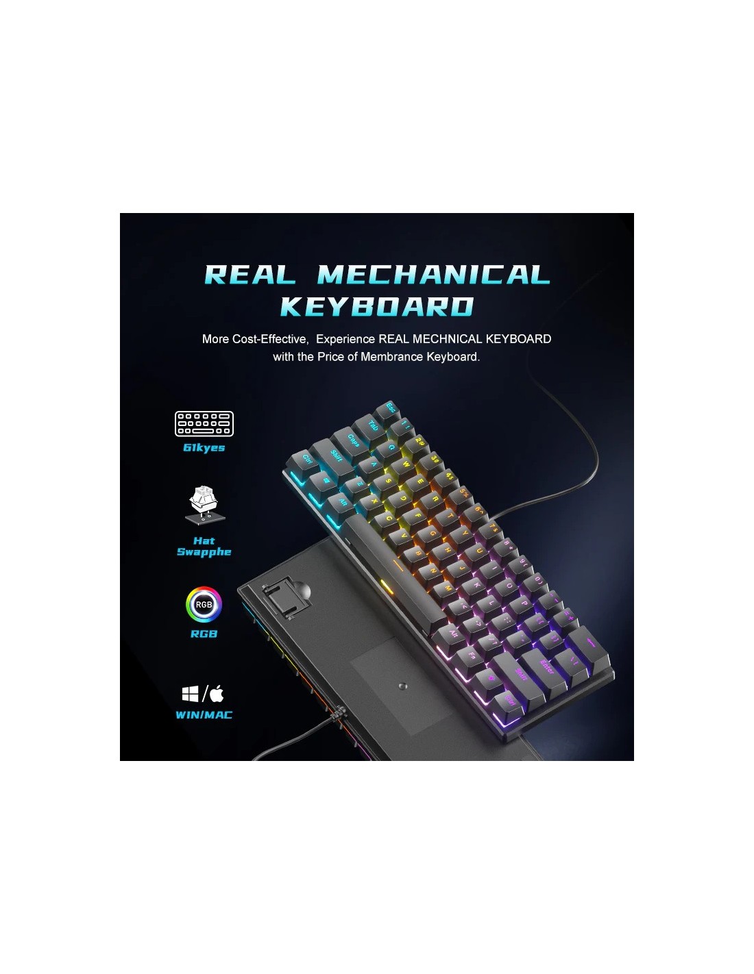 Clavier mécanique Zifriend BD61 à 61 touches avec rétroéclairage arc-en-ciel, Switch marron