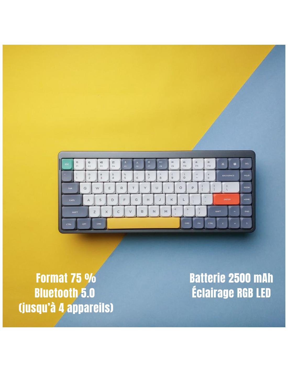Nombre de touches : 84 touches (Disposition ANSI 75 %)