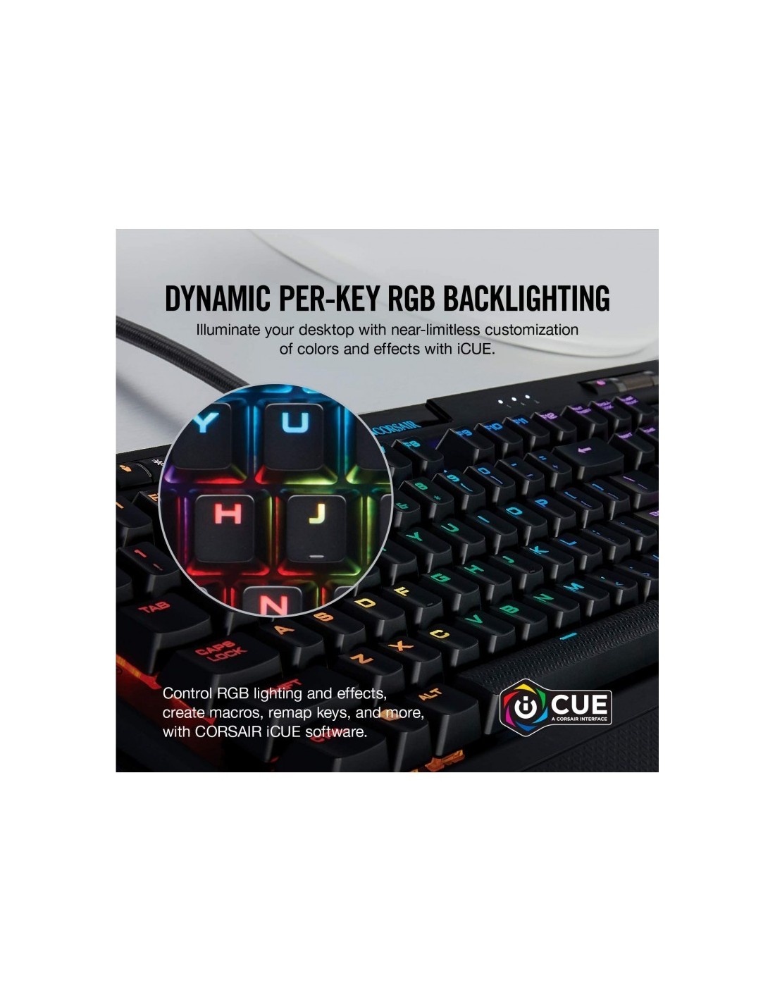 Rétroéclairage RGB : Le clavier offre un rétroéclairage RGB dynamique par touche, contrôlé par le puissant logiciel Corsair iCUE.
