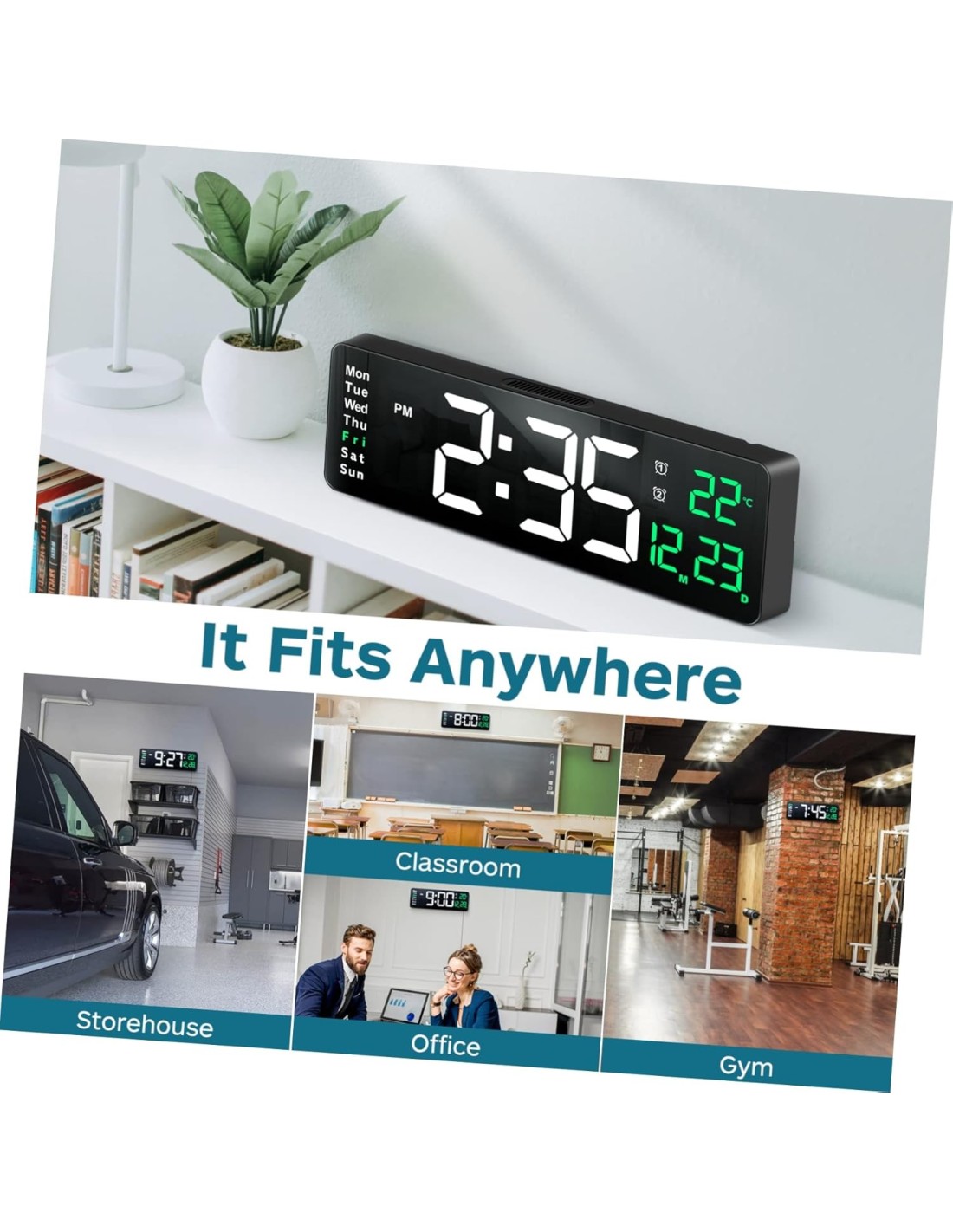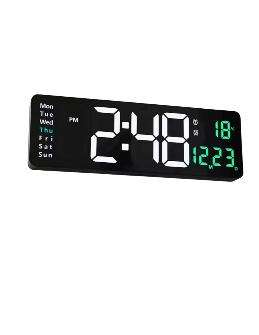 L’horloge numérique grand écran LED vert offre un affichage large et lumineux pour une lecture facile de l’heure, même de loin ou dans l’obscurité. Son design moderne et épuré s’intègre parfaitement dans un bureau, une chambre ou un espace de travail.