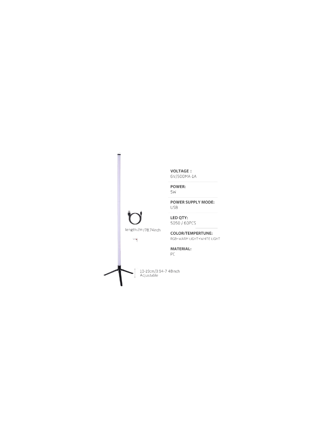 La RGB Floor Lamp est une lampe de sol LED moderne équipée d’une barre lumineuse de 60 LEDs 5050, offrant un éclairage RGB puissant et personnalisable. Alimentée via USB Type-C (5V/1A – 5W), elle combine performance et faible consommation d’énergie.