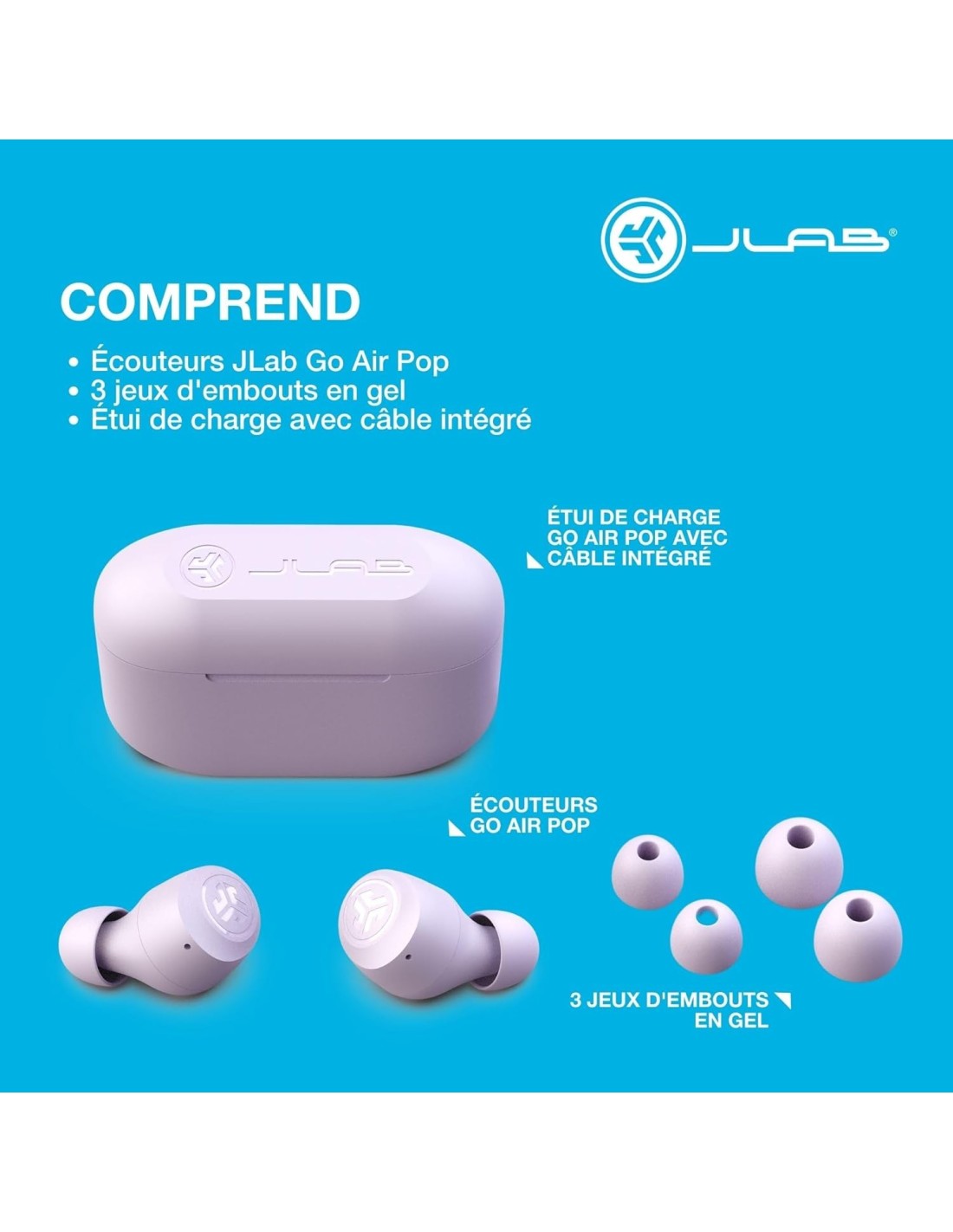 Avec le boîtier de charge portable, vous pouvez prolonger l’autonomie et recharger facilement vos écouteurs où que vous soyez. Performants et faciles à utiliser, les JLab Go Air combinent liberté sans fil et qualité sonore.