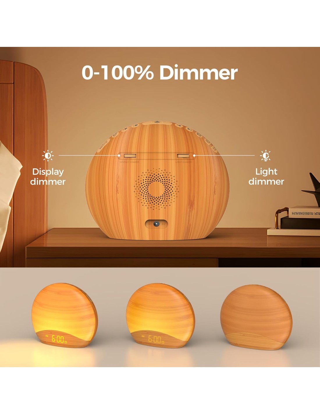 Reacher Sunrise Alarm clock R7W- horloge numérique à luminosité réglable pour chambre, 26 sons apaisants, machine à bruit blanc