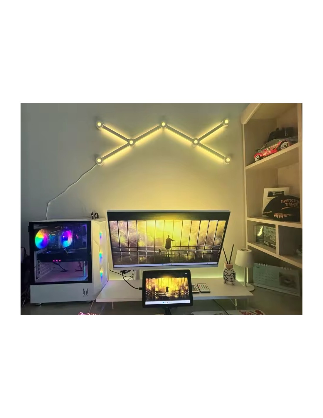 Les 6 barres lumineuses murales offrent un éclairage LED intelligent et personnalisable. Elle diffuse des couleurs dynamiques et des effets lumineux uniques pour créer une ambiance moderne et immersive. Elles peuvent être contrôlées via application pour ajuster les couleurs, la luminosité et les effets selon vos préférences. Idéale pour gaming, salon ou décoration, elle apporte une touche futuriste et personnalisée à votre espace.