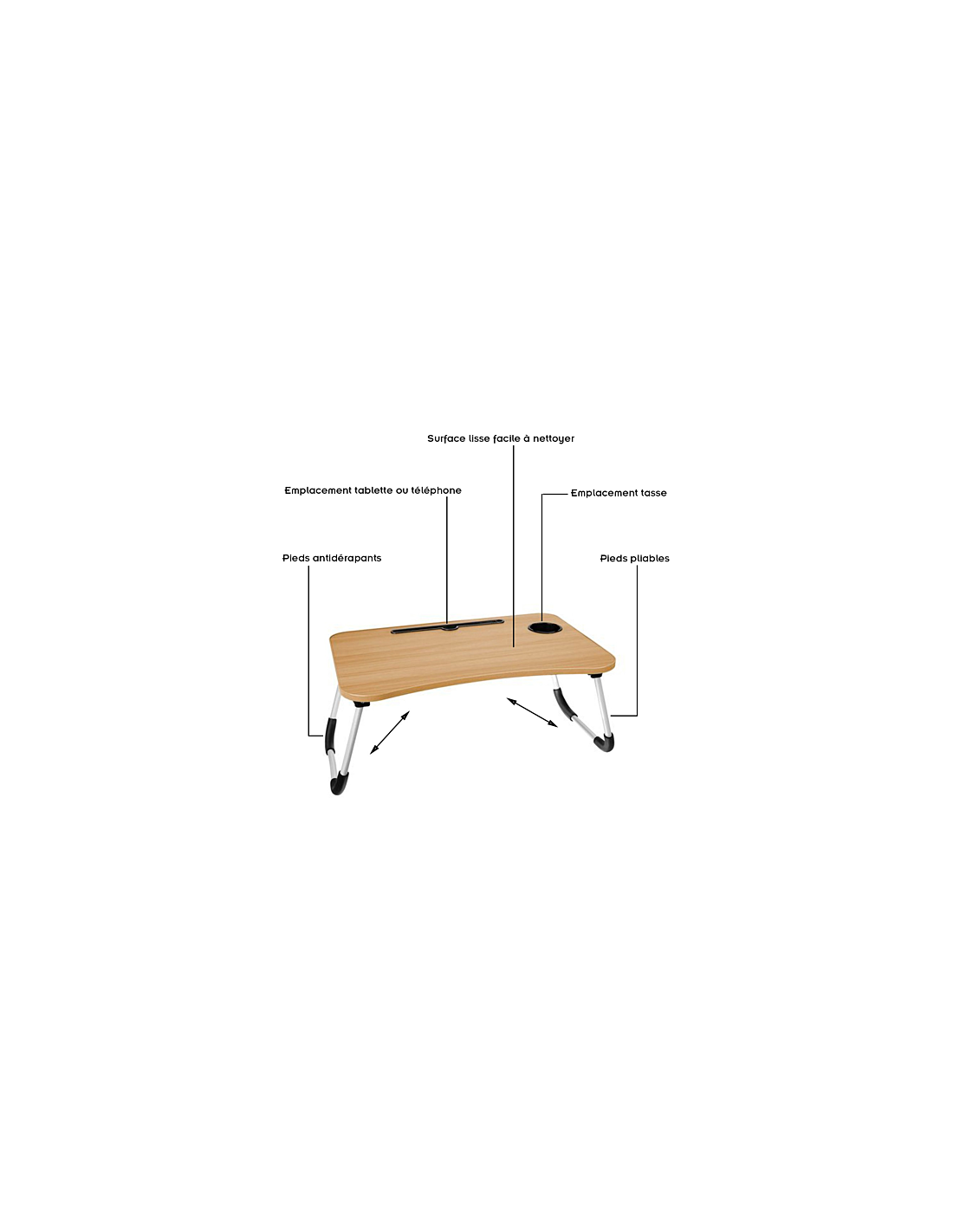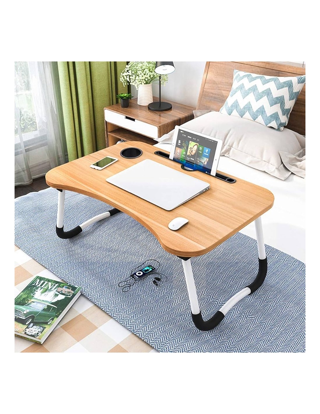 Table pliable couleur bois pour Laptob- port gobelet et Tablette- 40*60*28cm
