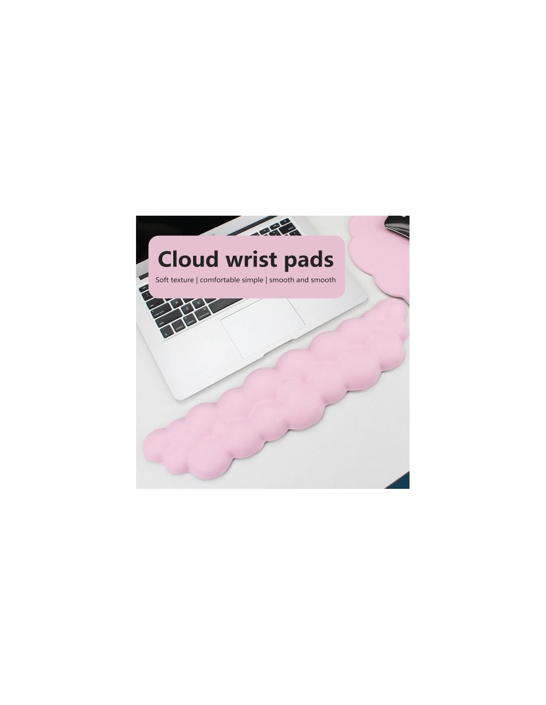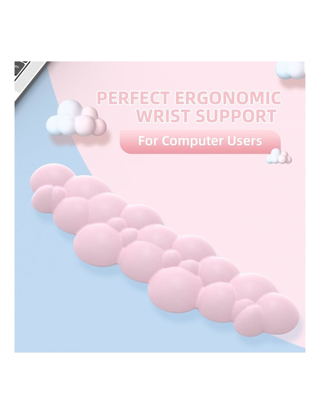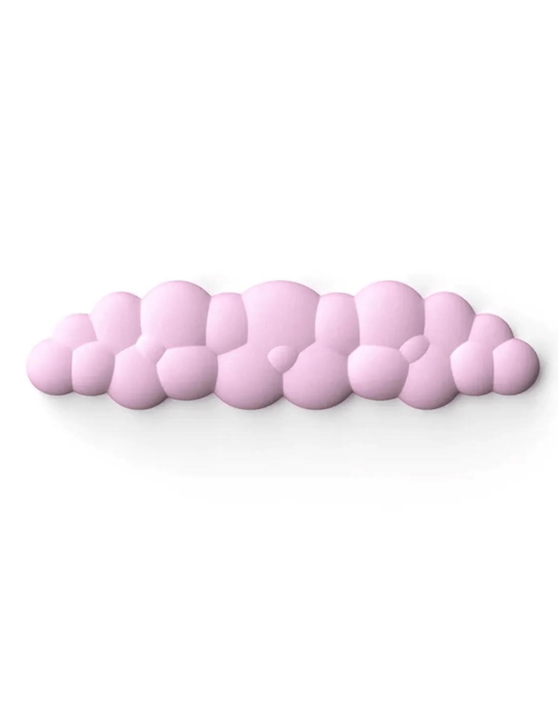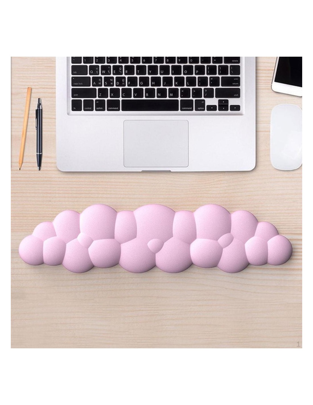 Repose-poignet ergonomique en forme de nuage, couleur rose, conçu en mousse confortable. Idéal pour le travail ou le gaming, il offre un soutien doux et réduit la tension musculaire. Sa base antidérapante assure une stabilité parfaite sur le bureau.
